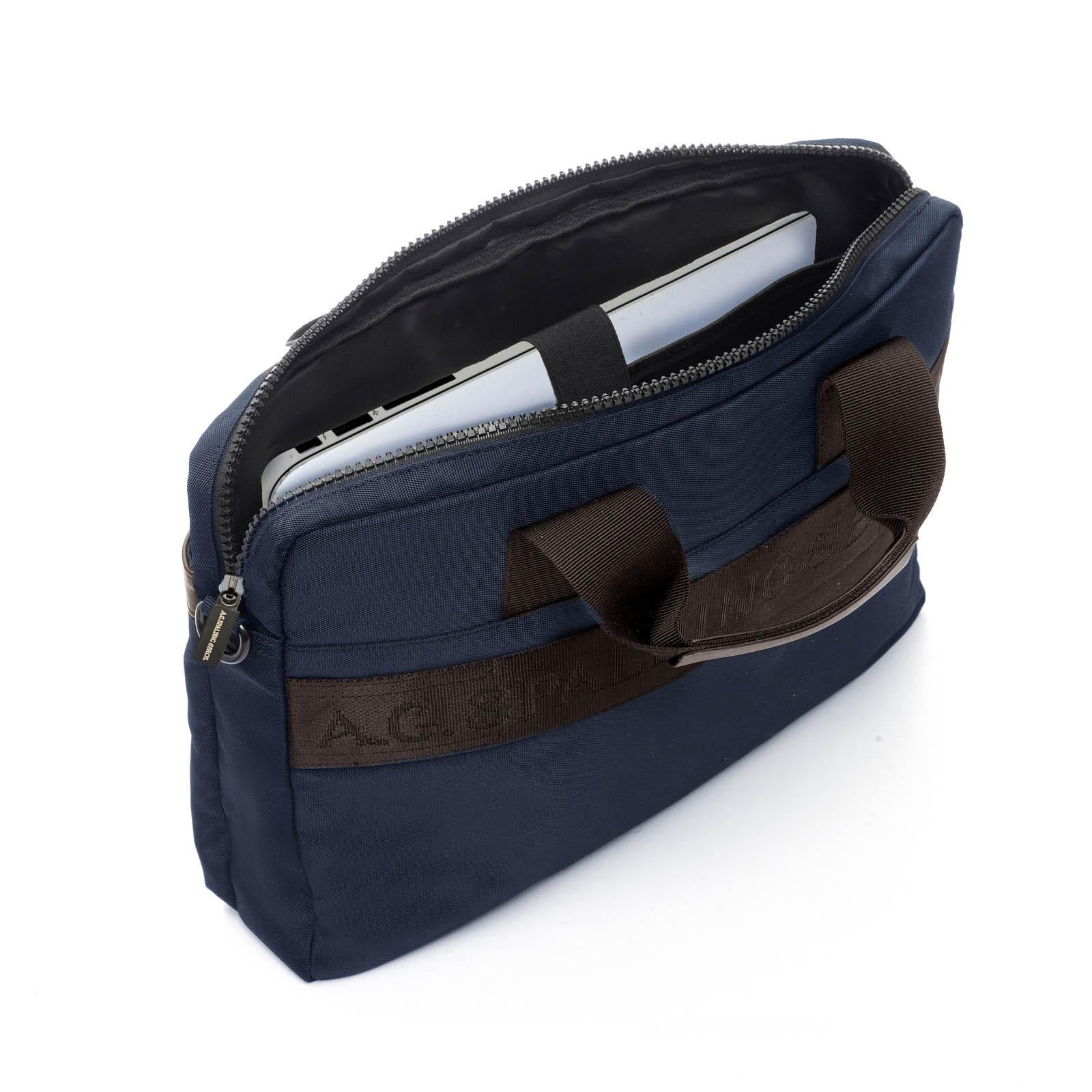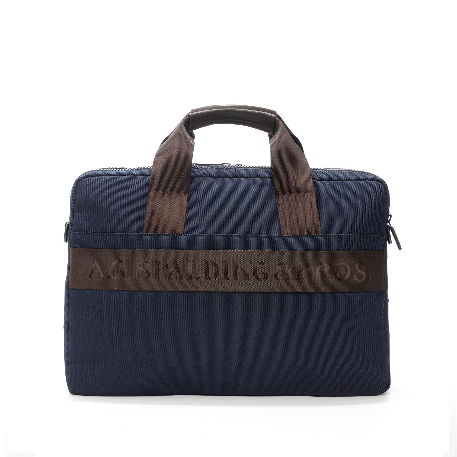 Cartella da uomo Spalding & Bros 1 Zip nylon bl�� e pelle marrone 309033U7030