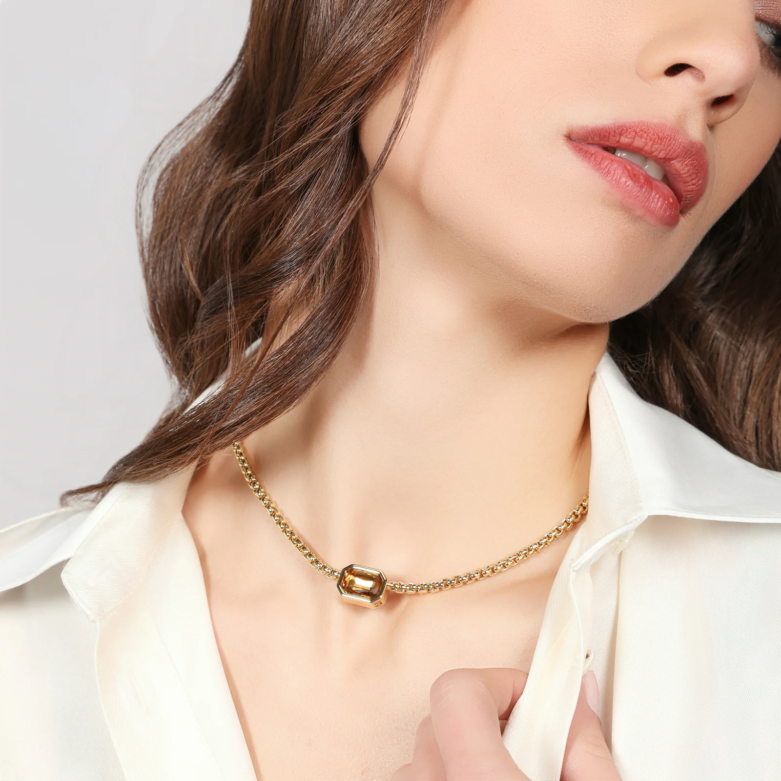 Collana Unoaerre catena forzatina Joya con cristallo giallo dorata 2831