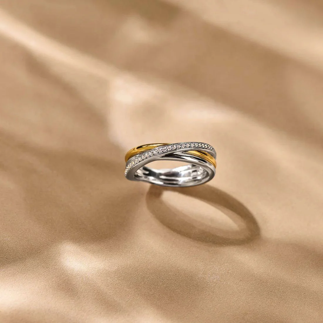 Anello Ti Sento Milano a tre fasce bicolore e con pietre bianche 12346ZY