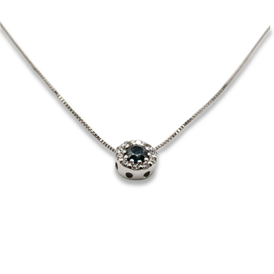 Collana zaffiro tondo e contorno brillanti ct 0,11