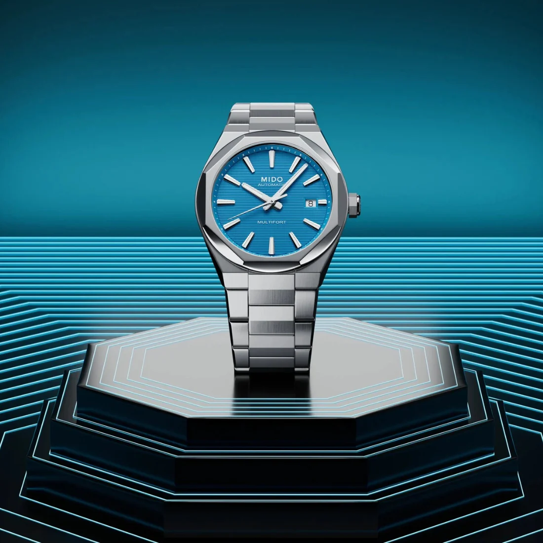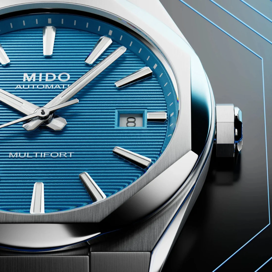 Orologio Mido Multifort 8 una corona blu bracciale acciaio