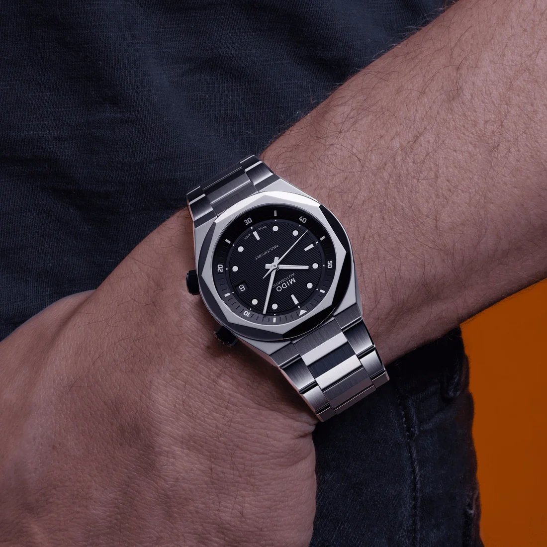 Orologio Mido Multifort 8 una corona nero bracciale acciaio