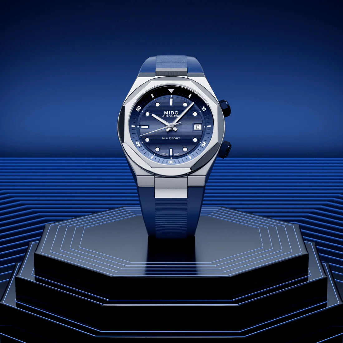 Orologio Mido Multifort 8 due corone blu cinturino gomma