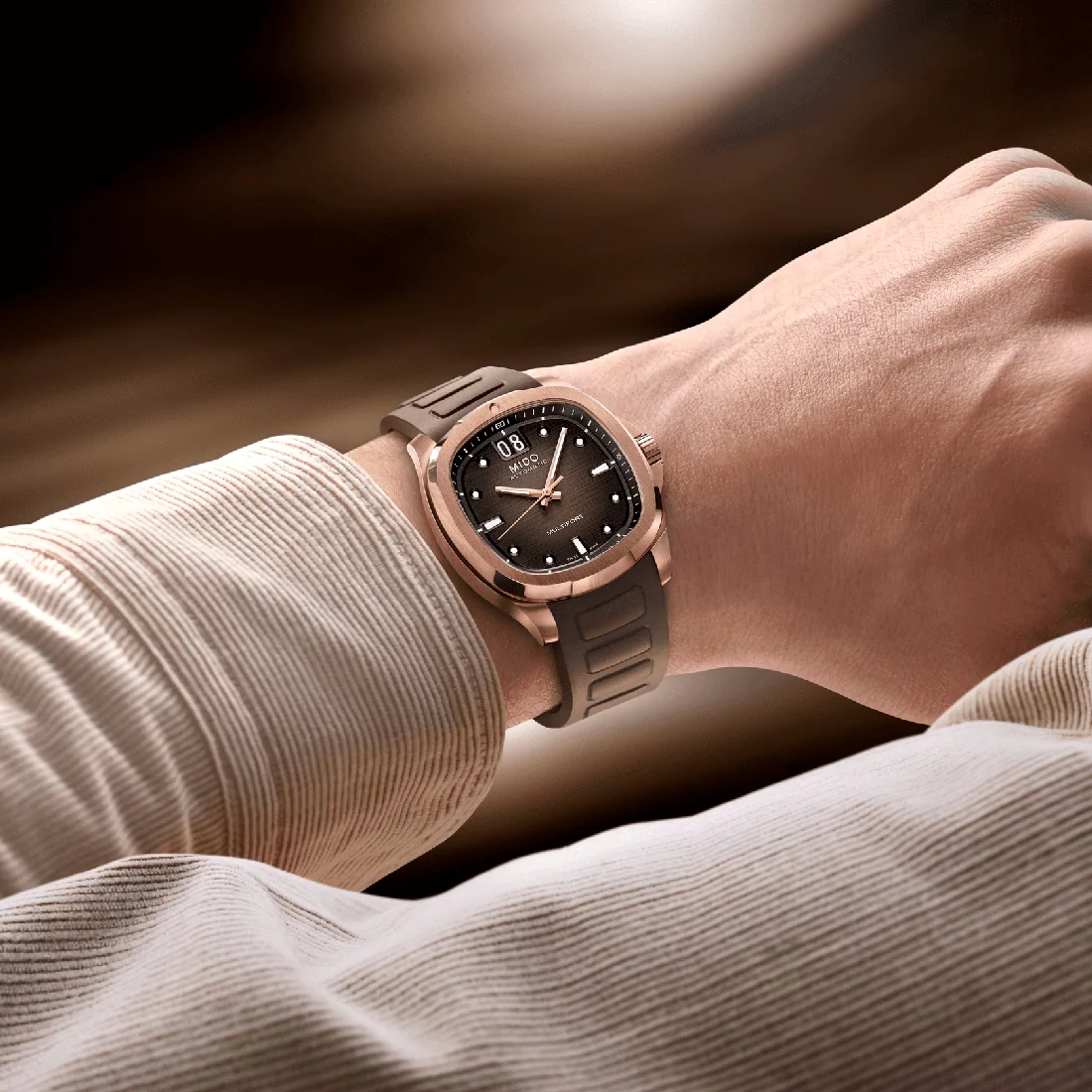 Orologio Mido Multifort Tv Big Date dorato rosa cinturino marrone
