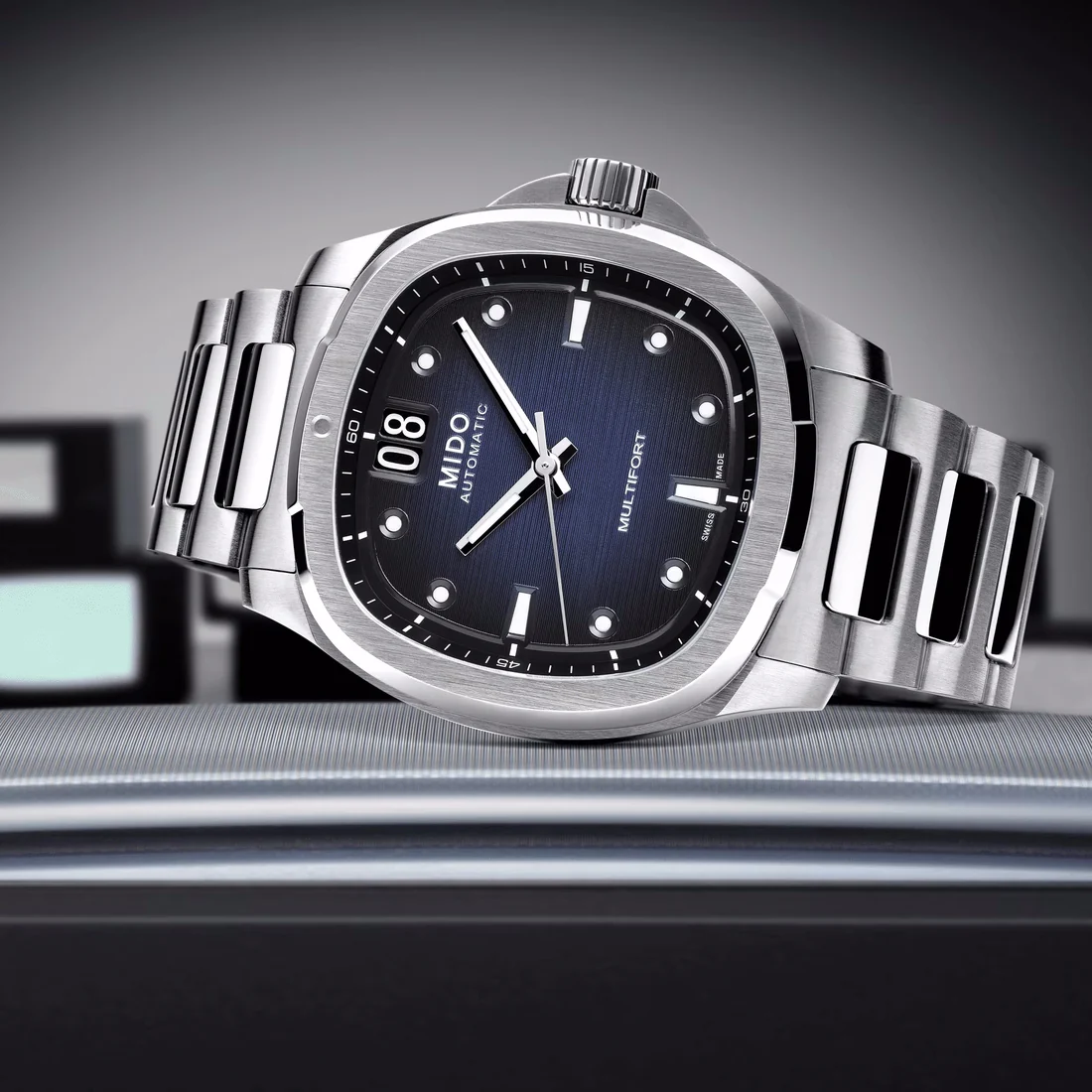 Orologio Mido Multifort Tv Big Date quadrante blu