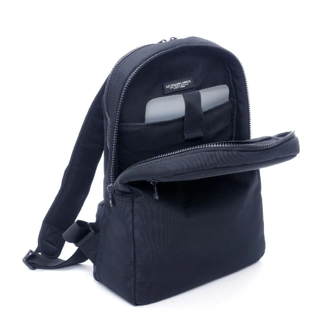 Zaino da uomo Spalding & Bros Square nylon nero e pelle 309031U900