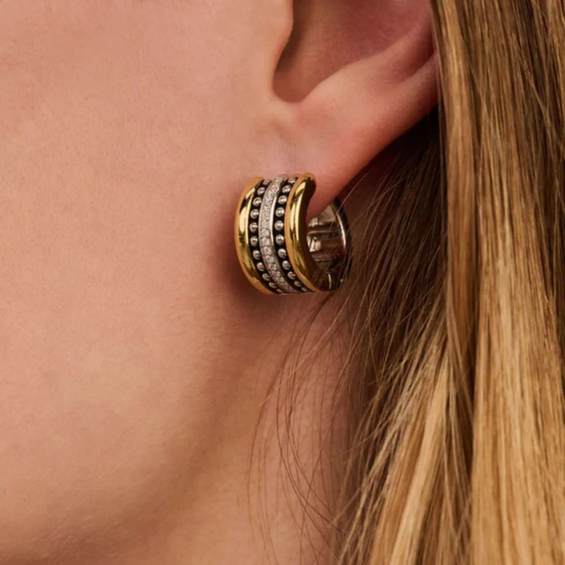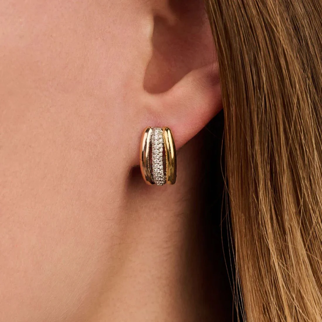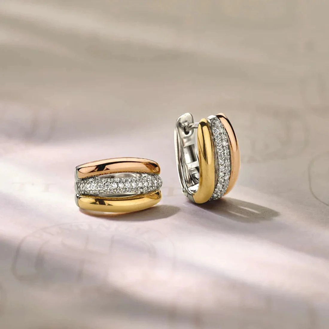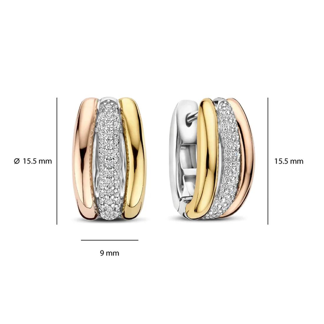 Orecchini Ti Sento Milano a cerchio varie texture bicolore con pietre 78065ZY