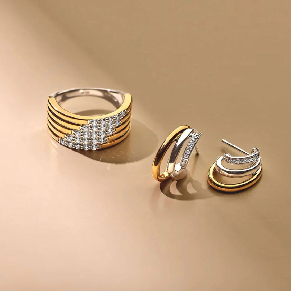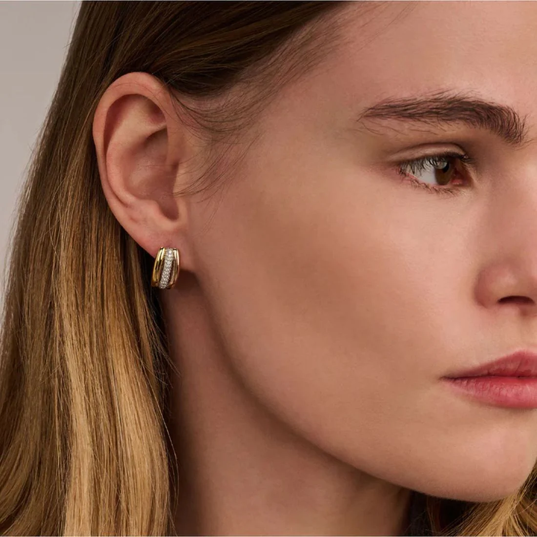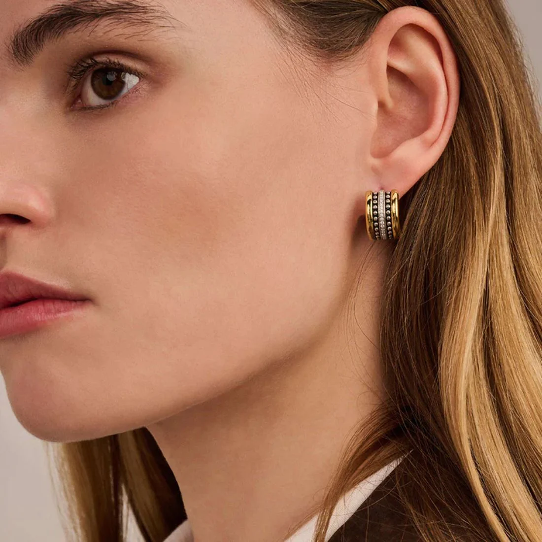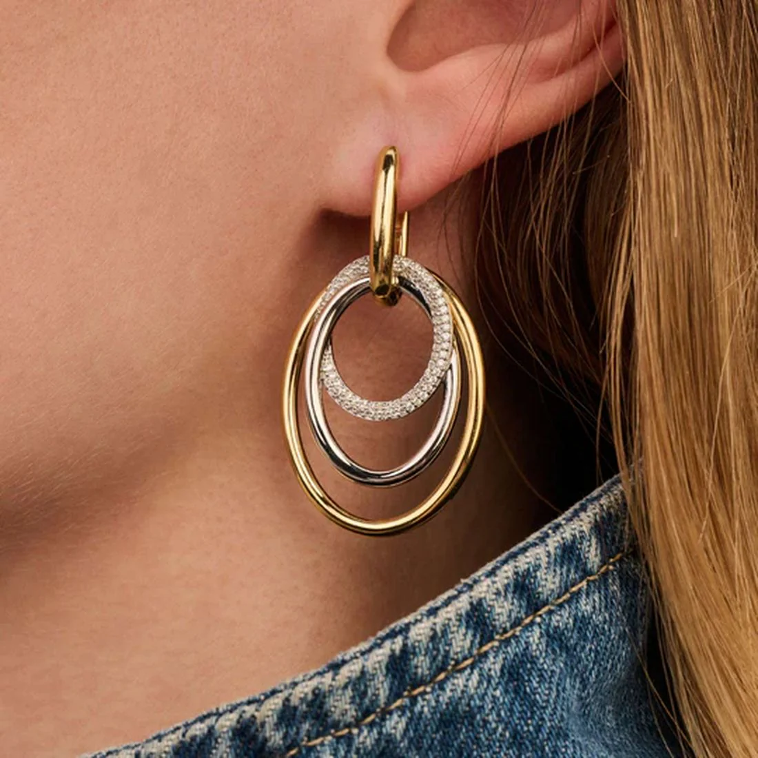 Orecchini Ti Sento Milano a cerchio varie texture bicolore con pietre 78065ZY