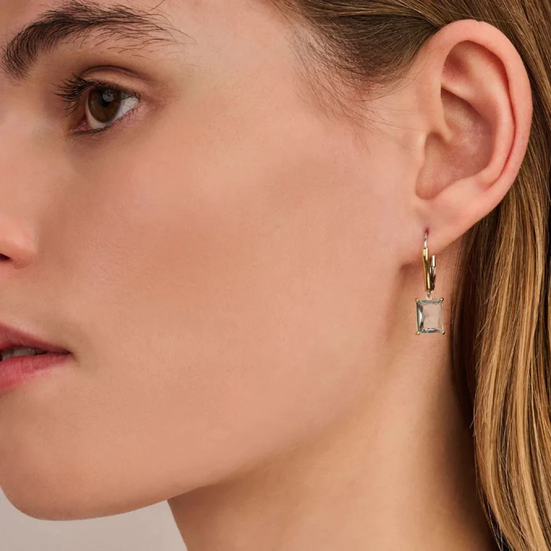 Orecchini Ti Sento Milano monachella con pietra azzurra rettangolare 78064TY