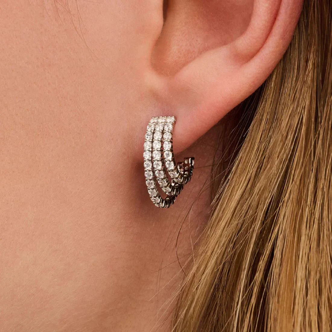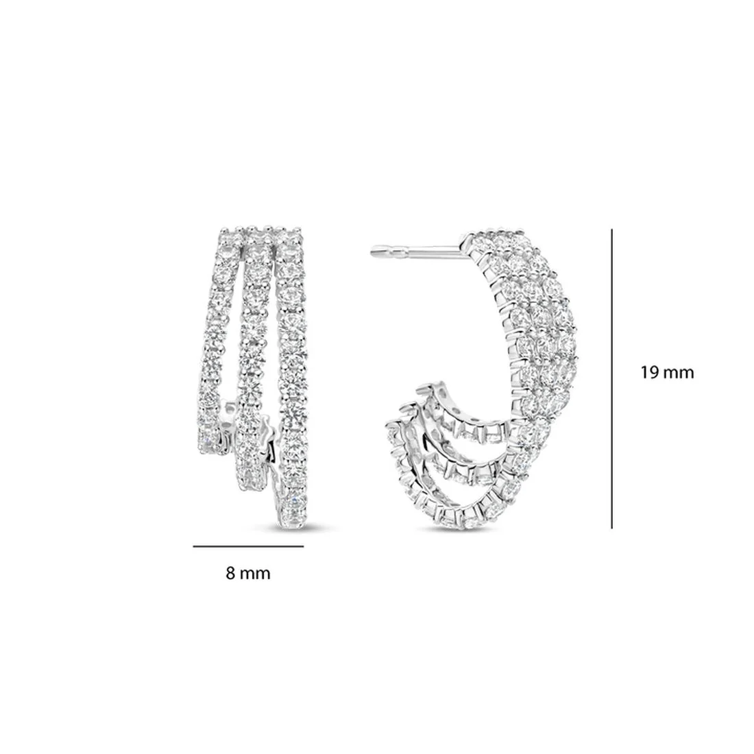Orecchini Ti Sento Milano in argento con tripla fila di zirconi bianchi 78069ZI